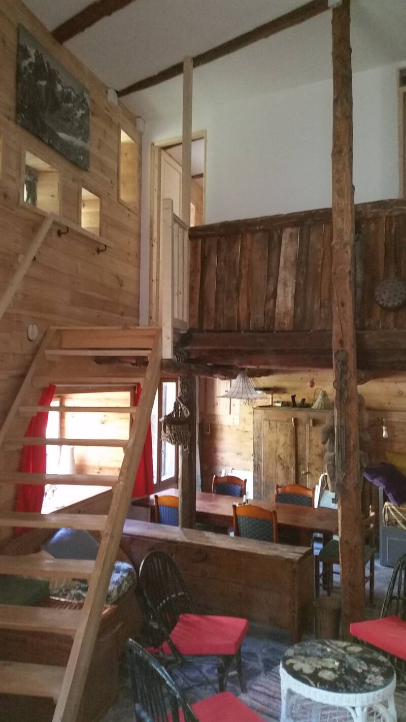 The Part (now living room) consists of a lounge-dining room area and a bedroom area (not a separate room). In the living room area is a wood stove for a cool summer evening or in winter (wood is available). In winter, the wood stove is the main heater: still stoking in the evening, will then stay sufficiently warm until morning.